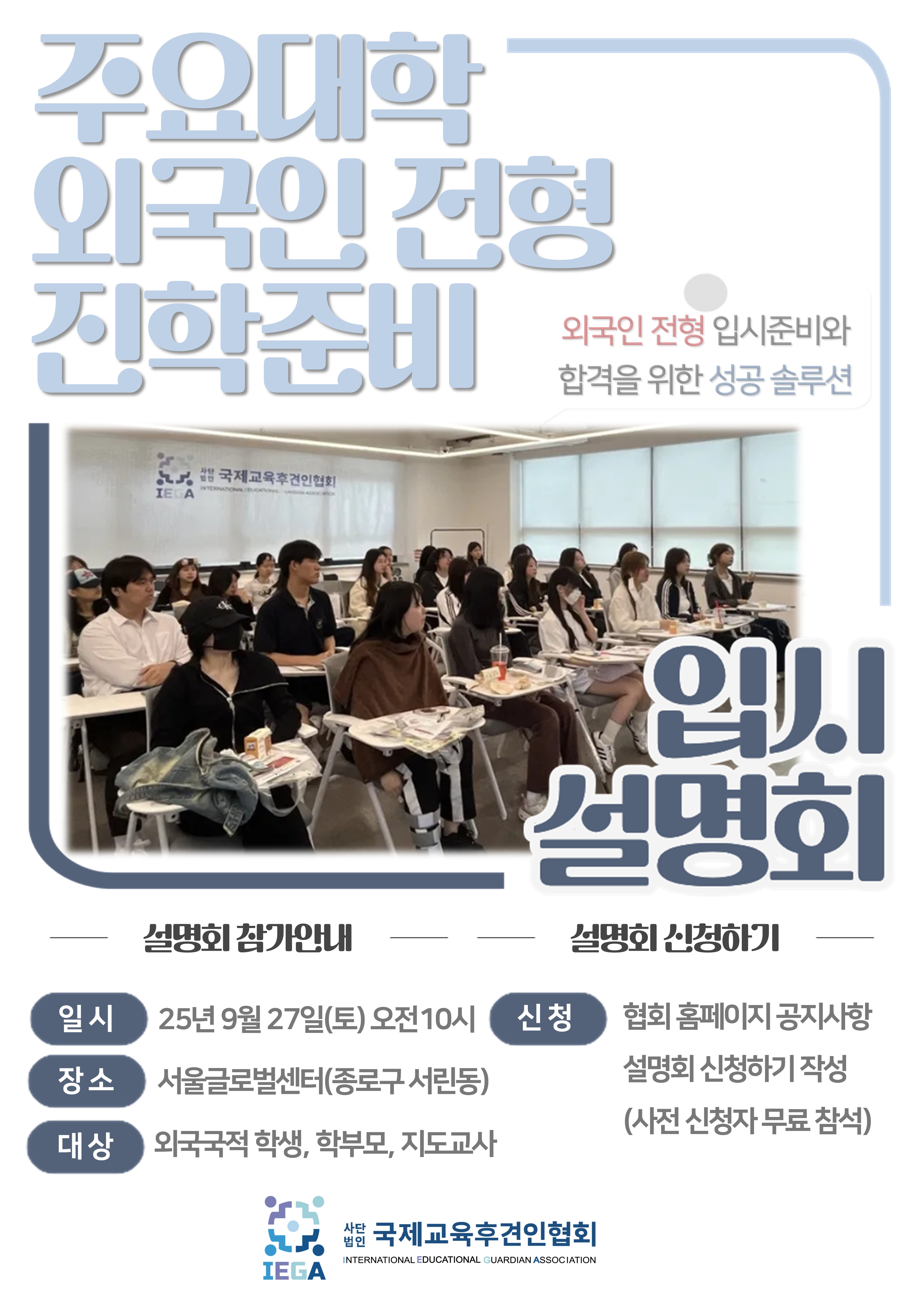 국제교육후견인협회, 외국인 전형 입시설명회 9월 27일 개최