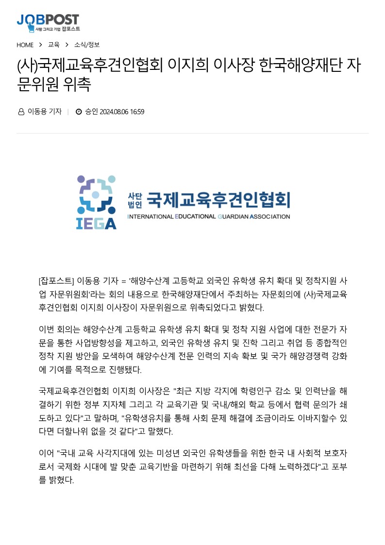 (사)국제교육후견인협회 이지희 이사장 한국해양재단 자문위원 위촉_24.8
