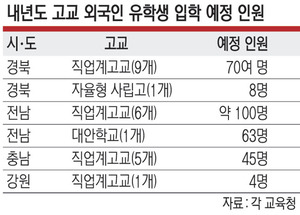 - 경북 내년 유학생 70여명 입학 / 전남 고교 약 100명 유치 예정