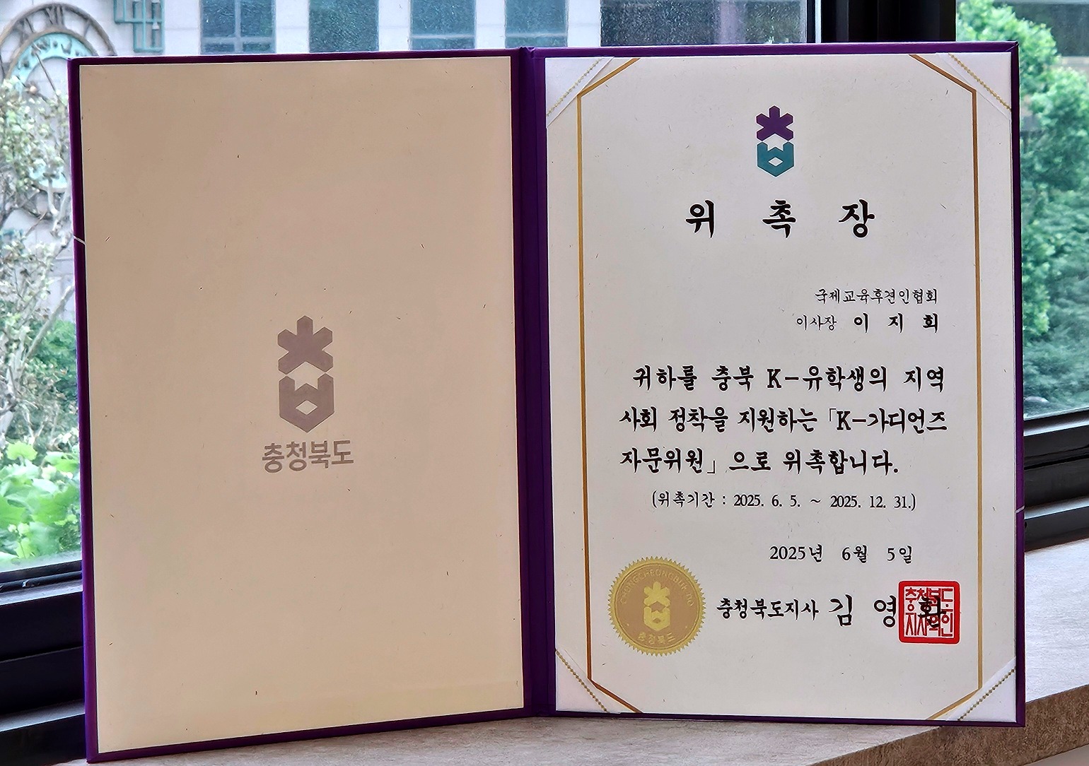 국제교육후견인협회 이지희 이사장님이 충청북도 ‘K-가디언즈’ 자문위원으로 위촉되셨습니다.