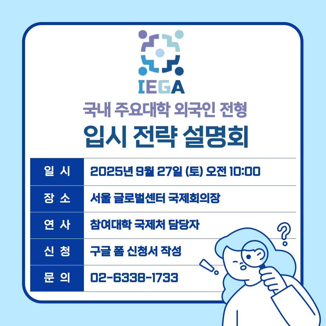 국제교육후견인협회 외국인 전형 대학/대학원 입시설명회 참가신청서 (IEGA Foreign Student Admission Briefing Session Application Form)